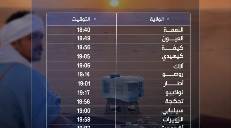 Read Moreأوقات إفطار اليوم الـ15 من رمضان في عموم موريتانيا الأخبار (نواكشوط) – تتراوح أوقات الإفطار اليوم الخميس الـ15 من أيام